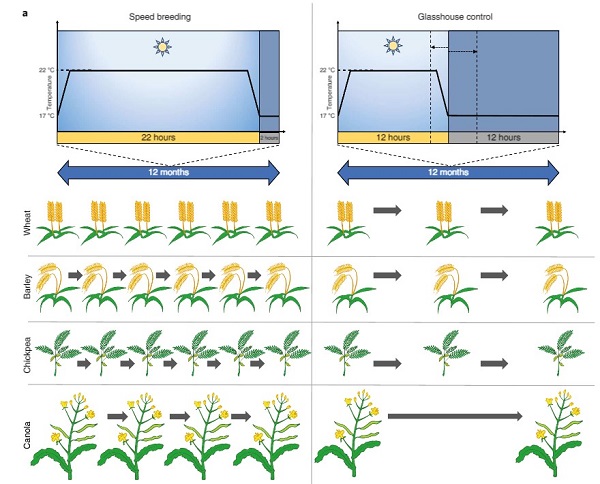 นักวิจัย UQ ประสบความสำเร็จใช้ speed breeding ปลูกพืชได้ 6 ครั้งใน 1 ปีจากปกติปลูกได้เพียง 1-3 ครั้งต่อปี นักวิจัยและนักผสมพันธุ์พืชกำลังจะเข้าสู่ยุคใหม่แห่งการวิจัย ไม่เพียงแต่ร่นเวลาการเพาะปลูกพืชให้สั้นลงเท่านั้น แต่ยังร่นเวลาการวิจัยให้สั้นลงด้วย จะทำให้ได้พันธุ์พืชที่มีลักษณะตามต้องการได้รวดเร็วขึ้น